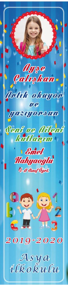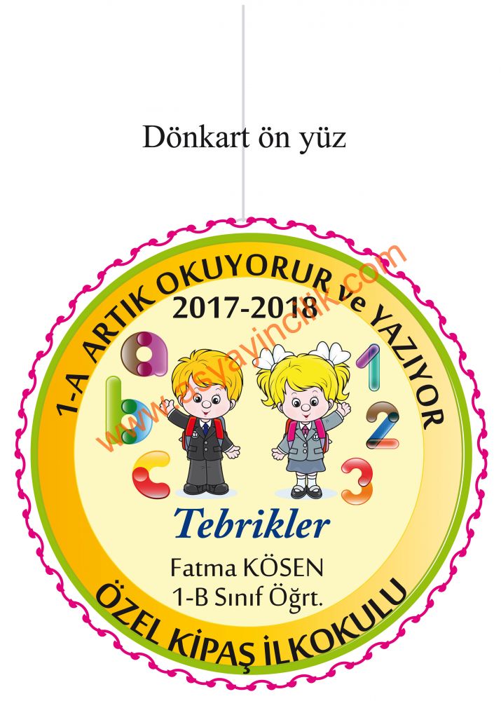 Okuma Bayramı Dönkartı yaklaşık 20x20 cm olup Askı ipi bağlanarak sınıf içi tavanlardan asılabilir. tek yüzlü baskıdır
